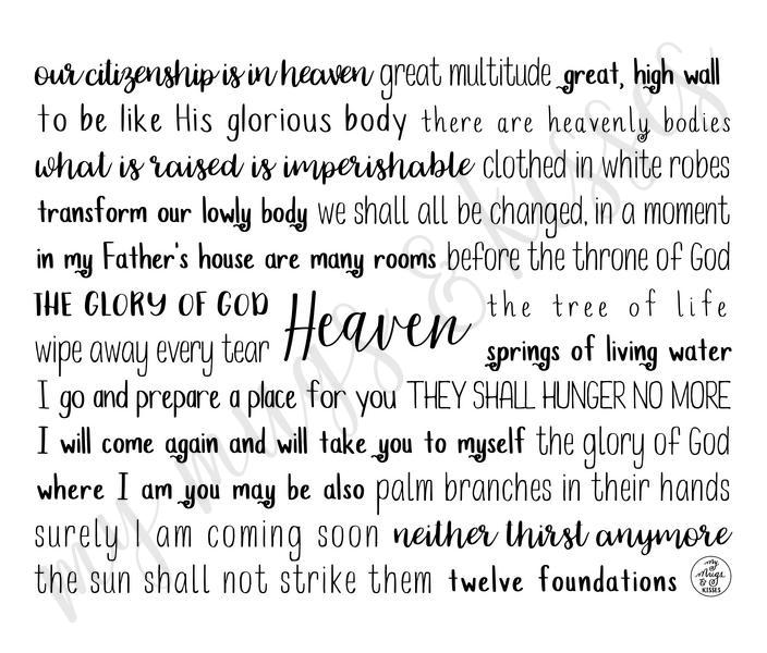 As you enjoy your favorite drink, you can read, reflect and immerse yourself in powerful words and phrases from scripture that wrap around our Heaven Travel Mug.