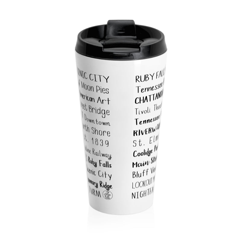 Go down memory lane as you enjoy your favorite drink while reading the landmarks and attractions that wrap around our Chattanooga, TN Travel Mug.