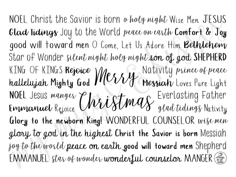 Our wrap-around design features everything we love about Christmas and the birth of Jesus. Feel free to edit the list above by adding your favorites. Merry Christmas!