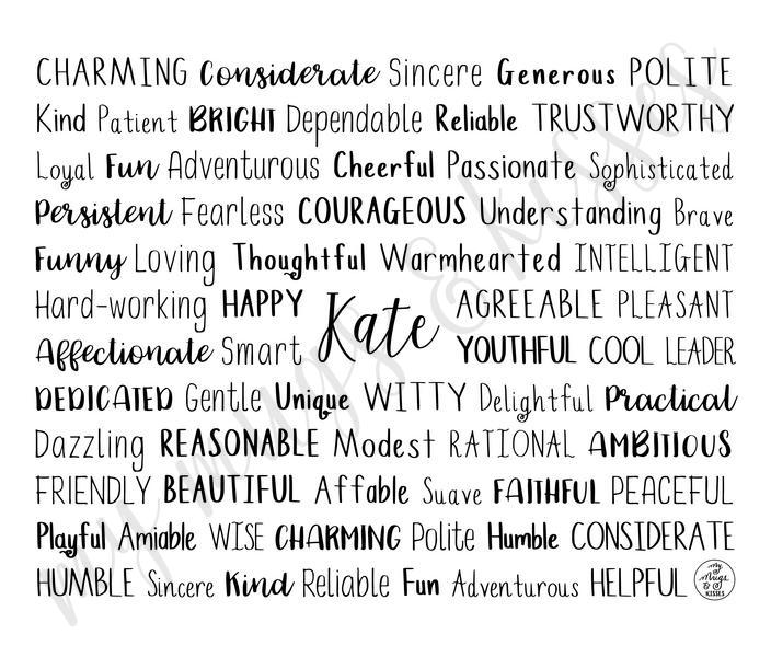 Each travel mug is made to order just for you so make sure to take advantage of our personalization software and add a few words to the list that express what you love about Kate, or create a unique list that might include the names of family members and friends, important dates and events, professional positions and accomplishments, favorite activities and hobbies, inside jokes and memories...the possibilities are endless! There is no added cost or processing time for personalizing your travel mug. You can easily type in all your own words, choose colors, pick from several different font options and even see your design update in real time when you make changes!