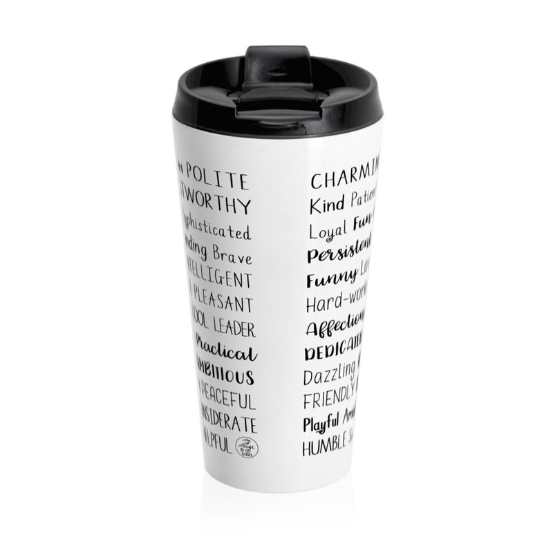 Give Kate the perfect gift. While enjoying a favorite drink, Kate will appreciate reading the kind thoughts that wrap around this treasured Kate Travel Mug.