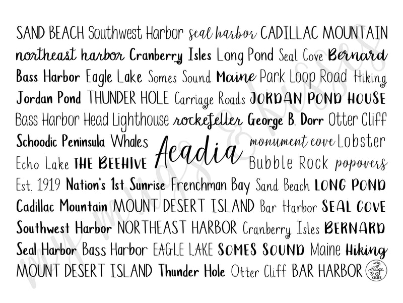 Our wrap-around design features the best of Acadia National Park. Feel free to personalize the list of words so your favorite memories appear on the tumbler.