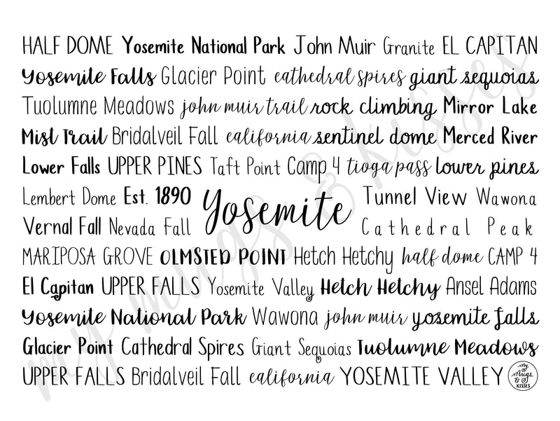 Our wrap-around design features the best of Yosemite National Park. Feel free to personalize the list of words so your favorite memories appear on the tumbler.