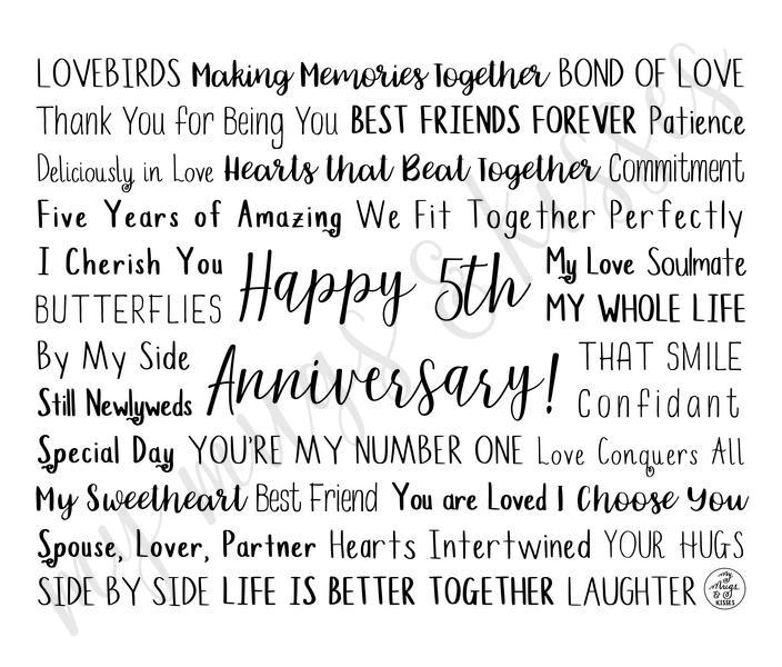 Each Happy 5th Anniversary! Travel Mug is made to order just for you so make sure to take advantage of our personalization software and add your loved one’s name, things that you love about them and their favorite memories! There is no added cost or processing time for personalizing your travel mug. You can easily type in all your own words, choose colors, pick from several different font options and even see your design update in real time when you make changes!