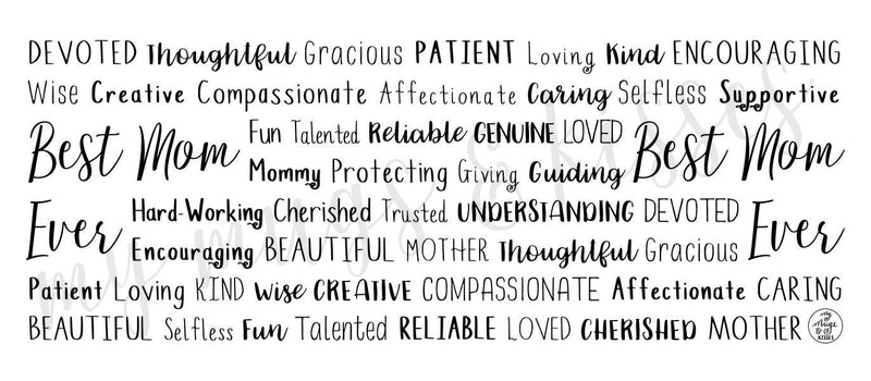 Each Best Mom Ever Mug is made to order just for you so make sure to take advantage of our personalization software and add a few words to the list that express what you love about them, or create a unique list that might include names of family members and friends, important dates and events, professional positions and accomplishments, favorite activities and hobbies, inside jokes and memories...the possibilities are endless! There is no added cost or processing time for personalizing your mug. You can easily type in all your own words, choose colors, pick from several different font options and even see your design update in real time when you make changes!