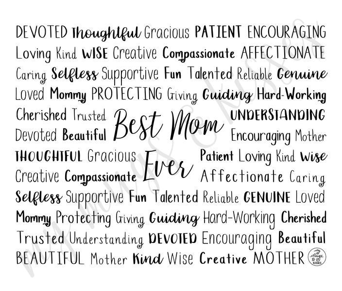 Each Best Mom Ever Travel Mug is made to order just for you so make sure to take advantage of our personalization software and add a few words to the list that express what you love about them, or create a unique list that might include names of family members and friends, important dates and events, professional positions and accomplishments, favorite activities and hobbies, inside jokes and memories...the possibilities are endless! There is no added cost or processing time for personalizing your travel mug. You can easily type in all your own words, choose colors, pick from several different font options and even see your design update in real time when you make changes!