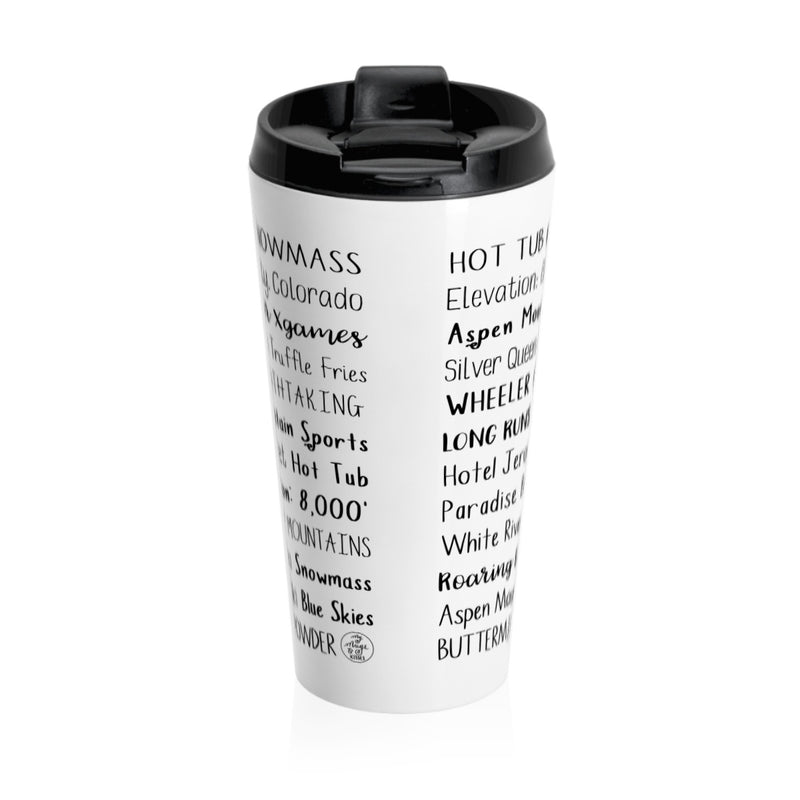Go down memory lane as you enjoy your favorite drink while reading the landmarks and attractions that wrap around our Aspen, CO Travel Mug.