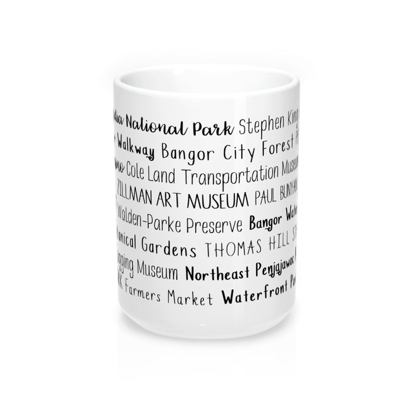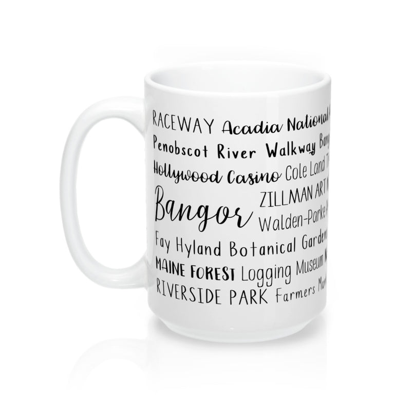 Go down memory lane as you enjoy a cup of coffee, tea, or hot chocolate while reading the landmarks and attractions that wrap around our Bangor, ME Mug.