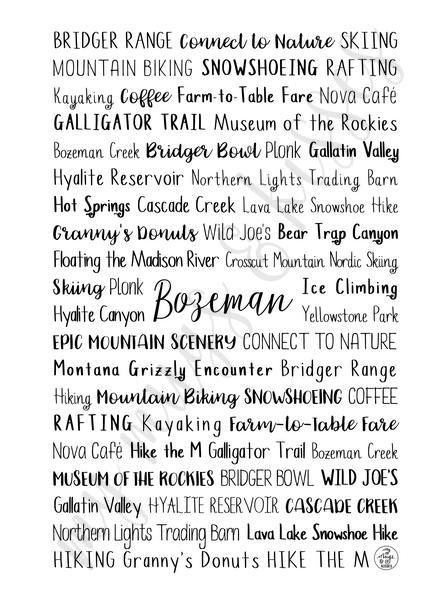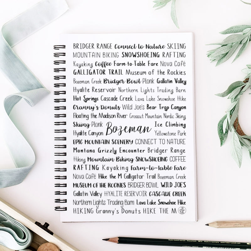 The cover of our Bozeman, MT Spiral Notebook features the landmarks and attractions around Bozeman. This notebook is small enough to throw in your bag and big enough to capture your thoughts, ideas, notes, and lists. The 120 lined pages are perfect for journaling your day to day, documenting your memories, and getting organized.
