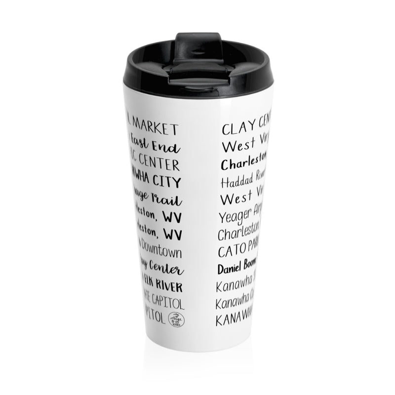 Go down memory lane as you enjoy your favorite drink while reading the landmarks and attractions that wrap around our Charleston, WV Travel Mug.