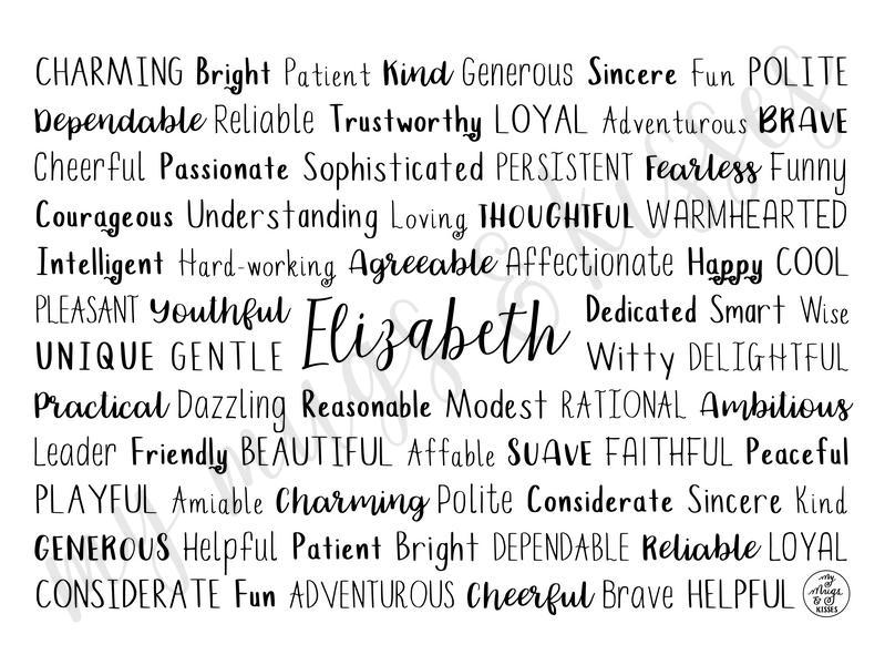 Each tumbler is made to order just for you so make sure to take advantage of our personalization software and add a few words to the list that express what you love about Elizabeth, or create a unique list that might include the names of family members and friends, important dates and events, professional positions and accomplishments, favorite activities and hobbies, inside jokes and memories...the possibilities are endless! There is no added cost or processing time for personalizing your tumbler. You can easily type in all your own words, choose colors, pick from several different font options and even see your design update in real time when you make changes!