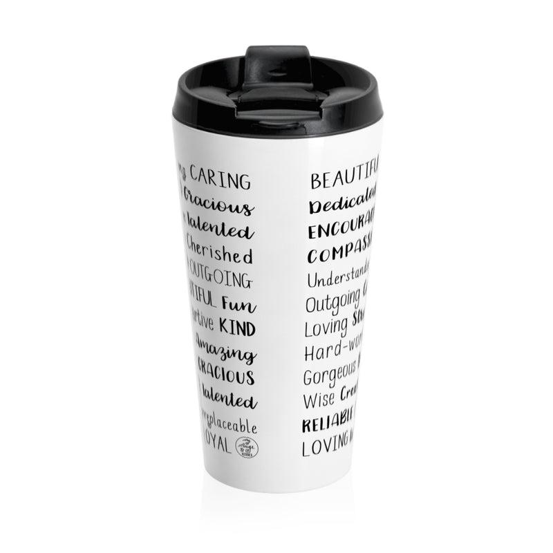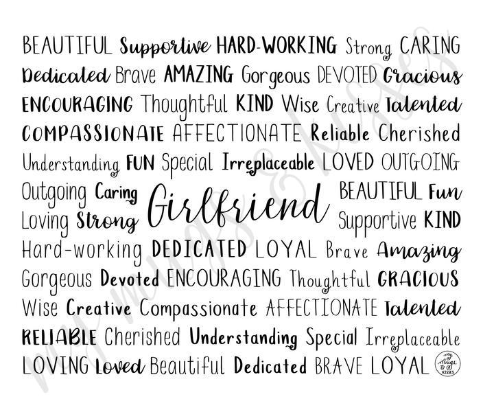 Each Girlfriend Travel Mug is made to order just for you so make sure to take advantage of our personalization software and add a few words to the list that express what you love about them, or create a unique list that might include names of family members and friends, important dates and events, professional positions and accomplishments, favorite activities and hobbies, inside jokes and memories...the possibilities are endless! There is no added cost or processing time for personalizing your travel mug. You can easily type in all your own words, choose colors, pick from several different font options and even see your design update in real time when you make changes!