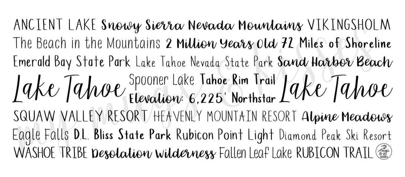 Each Lake Tahoe Mug is made to order just for you so make sure to take advantage of our personalization software and add your favorite street, restaurant, business, school and other memories! There is no added cost or processing time for personalizing your mug. You can easily type in all your own words, choose colors, pick from several different font options and even see your design update in real time when you make changes!