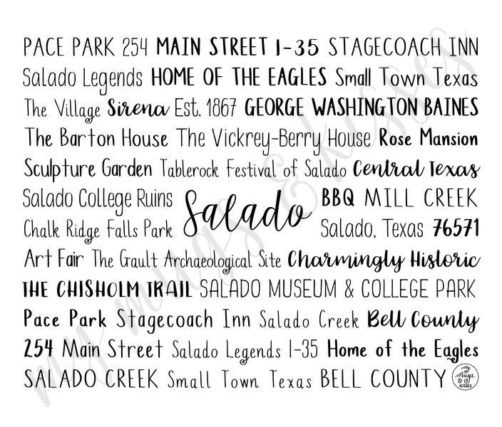 Go down memory lane as you enjoy your favorite drink while reading the landmarks and attractions that wrap around our Salado, TX Travel Mug.
