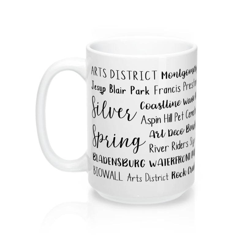 Go down memory lane as you enjoy a cup of coffee, tea, or hot chocolate while reading the landmarks and attractions that wrap around our Silver Spring, MD Mug.